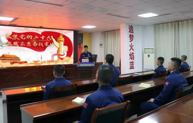 针对多元网络文化对指战员思想冲击大的实际,大队利用学习强国、营区电子屏、主流媒体等平台,广泛开展“党旗红”理论学习交流会、“强国蓝”应知应会挑战赛、“绿洲梦”南疆党史大讲堂等活动,把“听读、看评、讲做”贯通起来,把网络这个“最大变量”变成教育创新的“最大增量”,让指战员在潜移默化中培塑忠诚意识。此外,大队还结合营区政治文化建设,把党的二十大和全国两会精神要点做成灯箱,创建“平语近人”跑道、“火焰蓝”长廊和励志消防石,营造随时可学、随处可学的浓厚氛围,引导全体指战员在维护核心和看齐追随中强化忠诚自觉。