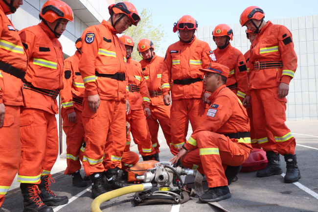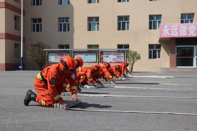“水泵架设与撤收训练,不光要求能熟练操作装备,更考验每名队员间团队协作和默契配合能力,尤其是主泵手和副泵手的配合直接决定着出水速度。”训练场上,教员围绕水泵单泵架设、串联泵架设、并串联泵架设等内容进行细致讲解,使集训队员初步掌握水泵架设与撤收的基本程序。