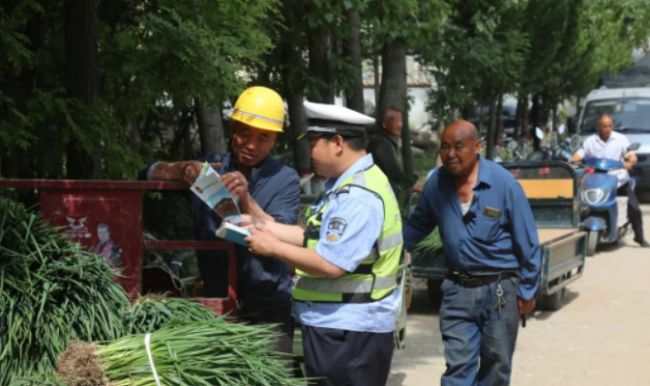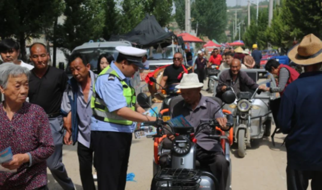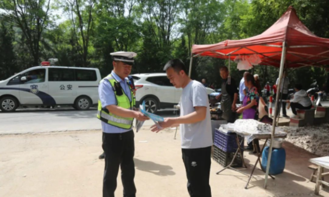 在庙会现场,民警通过发放宣传资料、面对面为群众答疑解惑等方式,向参加庙会的群众、摆摊商贩宣讲交通法规、电动车摩托车上牌须知和出行安全注意事项等内容。重点宣讲农用车辆非法载人、酒驾醉驾、无牌车辆、无证驾驶、超员超载、驾乘不戴安全头盔不系安全带等常见交通违法行为所带来的危害,敲醒安全警钟。同时,民警提醒参加庙会的群众,要自觉遵守交通法规,规范驾驶车辆,切实做到“生命至上,酒后禁驾”,并且要劝导乡里乡亲、亲朋好友共同遵规守法,安全文明出行。