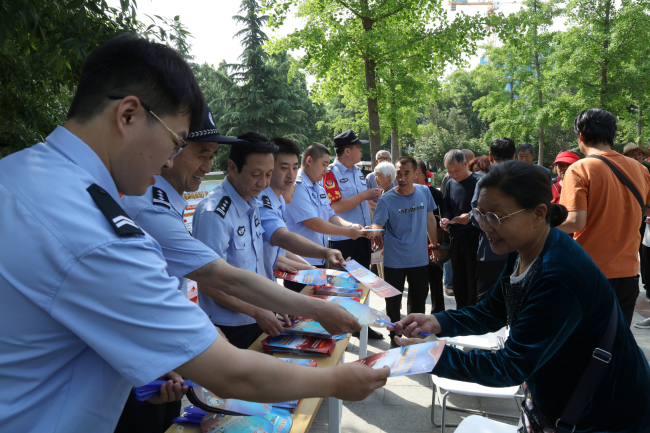 本网讯:(田哲斌)为增强人民群众对《反有组织犯罪法》的了解,营造全民参与常态化扫黑除恶斗争的良好氛围。5月17日上午,尧都区公安局刑警大队联合铁路东派出所在辖区居民活动广场,开展《反有组织犯罪法》实施一周年主题宣传活动。
