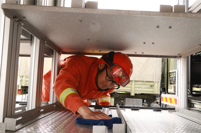 大队始终把车辆安全作为安全管理工作的重点,坚持“居安思危、加强检查、确保安全”的原则,定期召开车辆安全形势分析会和安全行车教育。严格落实每周五“车场日”动态保养制度,定期对车库灭火器进行检查,组织驾驶员对车辆电气设备、底盘轮胎、车辆防护装置等关键部位进行全面检修,发现问题及时解决,确保每台车辆达到良好技术状态。