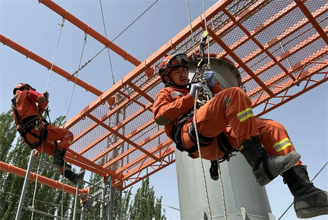 期间,教练员结合参加培训收获和学习内容,认真编写课件教案,按照“先简后繁、由易到难、循序渐进”的原则,面对面教方法、手把手传技能、互动式讲心得,重点对装备穿戴、锚点制作、担架固定、一对一救援、过偏移点、绳索系统搭建等科目进行了训练,认真示范每个动作,时刻强调安全事项,积极解疑答惑,并通过小抽考、小比拼、小会操的形式,充分调动参训人员的训练积极性,有效检验训练效果,不断锤炼指战员在实战环境下应用绳索救援技术的过硬心理素质和救援技能。