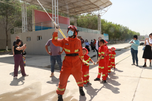 “消防员叔叔,这个风力好大呀”“消防员叔叔,我能和你一起合个影吗……”为提高群众安全防范意识,普及安全知识,增强社会实践活动能力。近日,新疆森林消防总队特勤大队营区迎来了一群“小萌娃”,孩子们零距离接触森林消防指战员,学习消防常识,了解消防生活,共同度过难忘而有意义一天。
