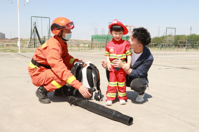 “今天来消防队,看消防员叔叔们演示,摸到方方正正的被子,背上吹风机,感觉好开心!”正在体验装备的小朋友兴致勃勃地说道:“我长大后也要当一名消防员,这样我就可以保护我们的森林,保护我们的树木花草不被烧毁。”
