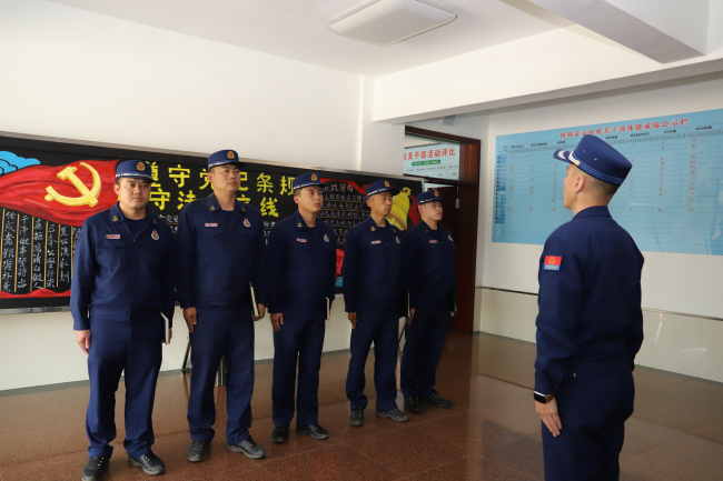 本网讯:(胡马尔别克)为扎实做好安全工作,进一步强化指战员安全意识,加强队伍管理,消除安全隐患,根据支队《2023年安全工作大检查活动实施方案》,近日,阿勒泰地区森林消防支队勤务中队严密组织安全大检查。