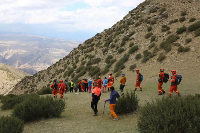 下山途中,一位55岁的“驴友”大姐小腿一直抽筋、无法行走,他二话没说背上被困者就向山下走去,步行13公里后,安全送达山下。