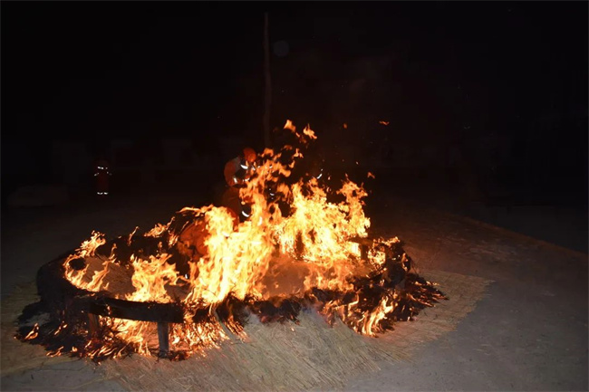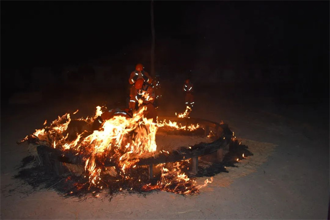同时,为进一步锤炼指战员良好心理素质,大队高度重视此次紧急避险训练,注重实装实操实火夜间训练,突出防护装备使用、点火避险、冲越火线避险等内容,设置逼真的火场环境,建立模拟火场,切实摒弃以往的“操场化”训练模式,让每名指战员真实感受火场的氛围,真正掌握避险的方法,并达到灵活应用的目的,营造浓厚的实战训练氛围,消除指战员对大火的恐惧感,掌握了火场紧急避险的方法,增强完成任务的信心和能力,教育引导指战员在执行森林防火任务中规避风险、降低损失,确保零伤亡。