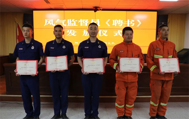 为持续抓好风气建设,落实各项监督制度,加强风气监督员履职尽责能力和监督作用发挥,推动监督工作不断拓展延伸,近日,巴州森林消防支队阿克苏大队组织开展基层风气监督员聘书发放仪式,向大队5名基层风气监督员颁发聘书。至此,来自不同岗位、拥有不同身份的基层风气监督员正式在全大队指战员面前亮明“身份牌”。