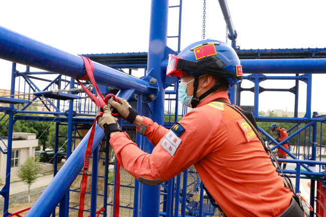 “说不怕,那是假的,刚跨出训练塔的一瞬间,由于身体突然悬空,心里咯噔一下,偷瞄脚下的高度,冷汗直冒。但是,贴近实战的训练就是为了日后更加出色地完成各项救援任务,我深知容不得半点马虎。”担架手赵文森说道。
