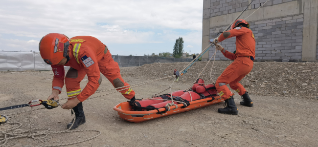 “绳桥到位,救援人员到位,可以开始!”救援过程中,参训人员克服高处带来的失衡感,针对现场救援环境特点,架设绳桥,制作适用性绳结和锚点,迅速展开了救援。“放绳!再放一点!收绳收绳!”班长一边指挥着全程,一边紧盯空中的伤员,握绳的双手浸满汗水,从携带船型担架营救“被困人员”成功着陆,用时10分钟左右。“说不怕,那是假的,刚跨出楼房的一瞬间,由于身体突然悬空,心里咯噔一下,偷瞄脚下比平时训练的高度高出不少,冷汗直冒。但命令在身,必须执行。实战演练就是为了日后更加出色的完成各项救援任务,我深知容不得半点马虎。”张浩瀚说道。