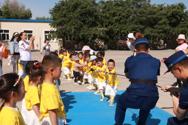 本网讯:(滕格斯)当祖国的“花朵”遇见“火焰蓝”,是一幅怎样可爱的画面?“六一儿童节”来临之际,巩留县第二幼儿园师生们带着对森林消防员的崇敬和对职业的好奇,走进巩留县森林消防大队营区中,近距离感受消防救援人员风范与“火焰蓝”魅力。