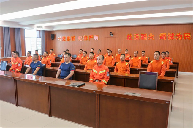 动员部署会上,支队灭火救援指挥部副部长武仕明宣读了培训方案,明确了此次培训的指导思想、培训内容和有关要求,上海极致消防工程有限公司严帅教官向全体人员介绍了上海极致消防工程有限公司的师资力量、培训方向和目标宗旨,培训队学员代表进行了表态发言。最后,支队长李孝军从“高度重视,抬高思想站位;着眼实战,灵活科学组训;勤学苦练,提升专业能力;作风过硬,全程安全顺利”4个方面做了动员部署,提出了具体要求。