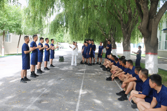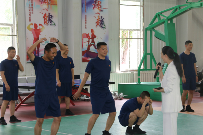 “大家跟我一起,慢慢举起双手,用力吸气,再缓缓放下双手,慢慢呼气,很放松很放松……”在心理专题教育环节,江娇娇老师以“情绪管理与压力释放”为主题,针对指战员的职业特点,结合训练工作重、任务转换快、危险系数高的工作特性,分析了比较常见的几类心理问题,并从心理学角度对心理压力的来源、表现以及如何应对困难挫折、消除不良情绪、有效处理情绪与压力等方面进行了辅导讲解,现场有问有答、气氛热烈。