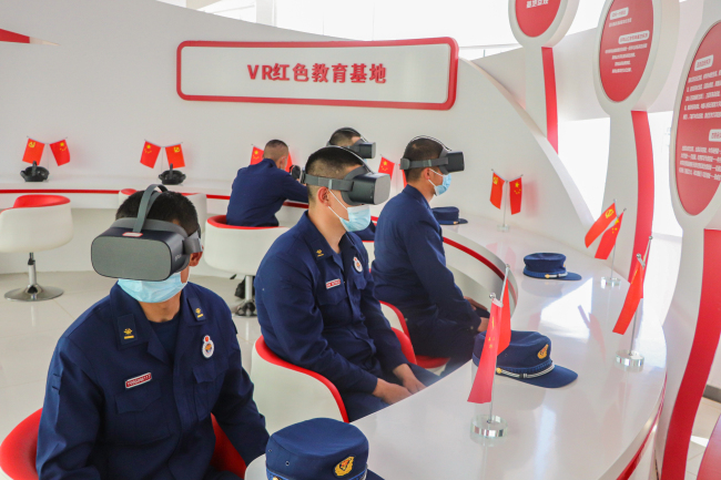 参观结束后,讲解员为大家带来了一场别开生面的党课教育,观看红色纪录片《国家记忆》,使消防救援人员深入了解中国共产党组织创建、发展壮大的光辉足迹,革命先烈不怕牺牲、前赴后继缔造伟大民族复兴的伟大历程,深刻感受我党扎根群众、依靠群众、组织群众的光荣传统。据该党建图书馆负责人介绍,馆内分类别建立优秀党课、红歌、红色电影、业务培训、座谈交流会等多类型教育内容,利用“红色讲堂”让党性具体实在,使用VR设备让党员身临其境的接受党性教育,感受共产党人坚定的理想信念。