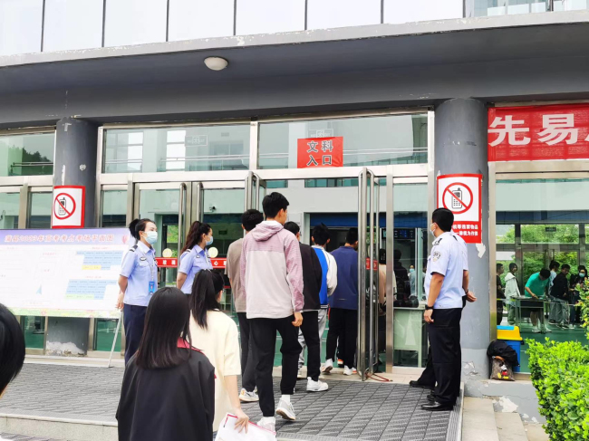 安保勤务,全力以赴。为确保广大考生顺利赴考,早上7时,各执勤民辅警提前到岗到位,以考点为中心,采取点上管控、线上疏导、面上保畅的方式,强化考点周边交通秩序管理,加强交通疏导,实行临时交通管制,积极为高考送考车辆开辟“绿色通道”,劝导社会车辆绕行,全力保障高考期间道路交通安全、畅通、有序。提前对高考考点周边开展“静音行动”,劝导工厂企业、施工工地静音作业或者考试期间临时停工,为考试创造宁静环境。
