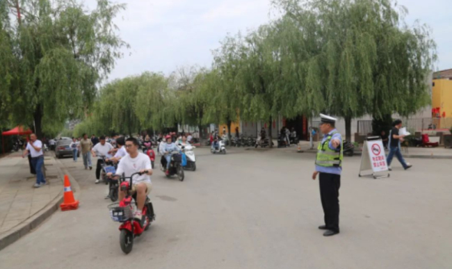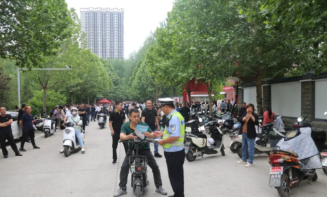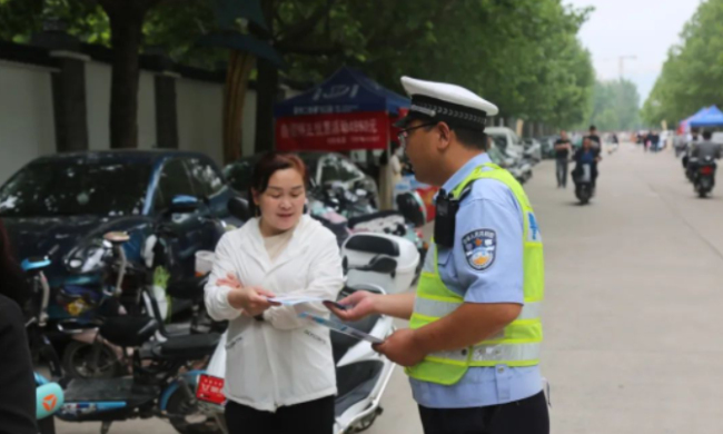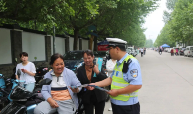 考前,大队执勤民、辅警提前到岗到位,在考点及周边道路摆放锥形桶、设置警示牌、挂起警戒线等交通设施,指挥维护考点周边道路停车秩序,做好道路交通疏导工作,保障考生畅通出行,保障学生们进校门、出考场就能“见警车、见警灯、见警察”。考试期间,民警利用家长陪考时间,以拉家常的方式为陪考家长们发放《致学生家长们的一封信》宣传资料、讲解典型事故案例,教育学生家长要牢固树立安全意识,切勿让孩子乘坐三轮车、农用车、拖拉机及超员车辆,时刻监督、教育、纠正孩子不文明交通违法行为,养成良好的习惯。同时,民警还结合“一盔一带 安全常在”、“酒驾醉驾”等交通安全宣传活动,用通俗易懂的语言向家长们讲解汽车驾乘人员不系安全带、骑乘摩托车、电动自行车不戴安全头盔、三轮车违法载人的危害性,杜绝麻痹思想和侥幸心理,不仅提升了家长们的交通安全意识,还提升了家长们对“一盔一带 安全常在”的知晓率及头盔佩戴率。
