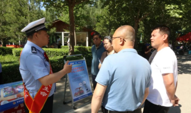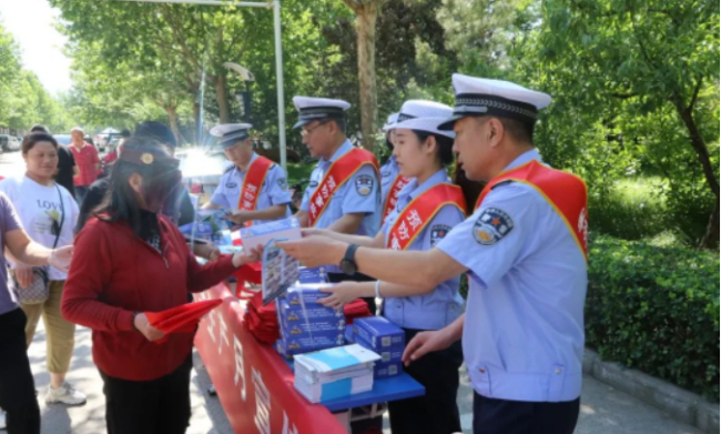 活动中,大队领导带领综合科民警,通过设立咨询台、摆放展板、发放资料、剖析典型事故案例、讲解车驾管业务办理流程等相关知识。向现场群众讲解了因无证驾驶、疲劳驾驶、超速行驶等交通违法行为引发交通事故的严重危害性,呼吁广大群众要遵守交通法规、不乘坐非法营运车,骑乘摩托车要佩戴好安全头盔、驾乘车辆要系好安全带,进一步增强了广大交通参与者的道路交通安全意识、法治意识和文明意识,有效预防了道路交通事故的发生,营造了浓厚的“安全生产月”的宣传氛围。同时,民警结合夏季出行特点,向群众讲解辖区发生的典型交通事故案例,重点阐述酒后驾驶、超员以及骑乘车辆不系安全带、不佩戴安全头盔等违法行为引发交通事故的惨痛后果,告诫广大群众要从思想上重视交通安全,行动上遵守交通法律法规,做到安全驾驶、文明驾驶,养成良好的交通出行习惯,共同营造一个平安、畅通、和谐、文明的交通环境。