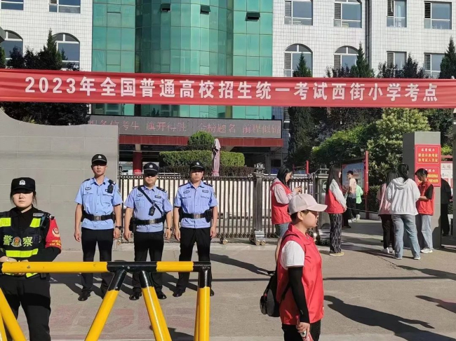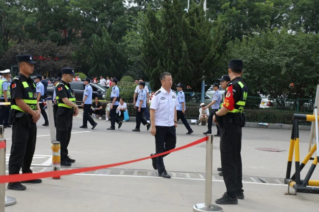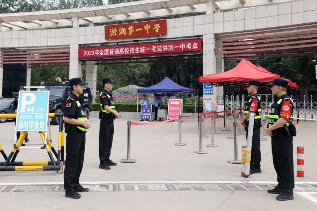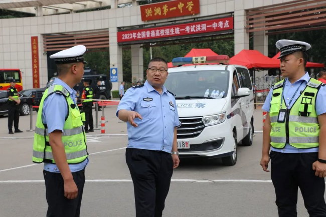 为切实做好2023年全县高考安保工作,洪洞县公安局党委高度重视,提前谋划,精心部署,多措并举,全方位、多角度为考生保驾护航。高考前夕,深入一线,对高考考点进行了实地调研检查,查看考点及周边治安环境,现场调整执勤警力,设置警戒区,有序推进高考安保工作。