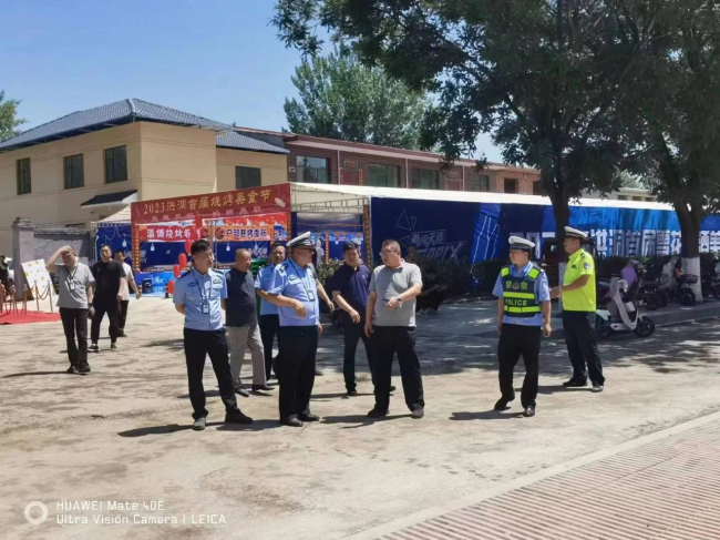 为进一步规范夜市经营管理秩序,有效防范各类安全隐患,确保人民群众生命财产安全,营造安全稳定的夜间消费环境。6月9日,洪洞县公安局领导李晓强,大槐树镇镇长王德芳同大槐派出所、巡特警大队、交警城关中队、市场监督管理所、电业所、应急管理站等相关部门人员对2023洪洞烧烤文化节暨大型”烟火夜市“开展安全检查,全面护航”烟火夜市“经营环境。