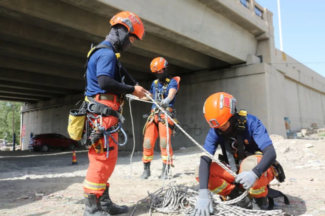 绳索救援技术是指利用绳索将伤者或被困者从危险位置转移到相对安全位置的行动。随着队伍“全灾种、大应急”的任务需求,绳索救援技术被越来越多地运用到救援行动当中。不仅被用于山岳救援、河中沙洲救援等难度大,危险系数高的特定场合,还应用于悬崖火处置等常见场合,成为救援的一种常规手段。