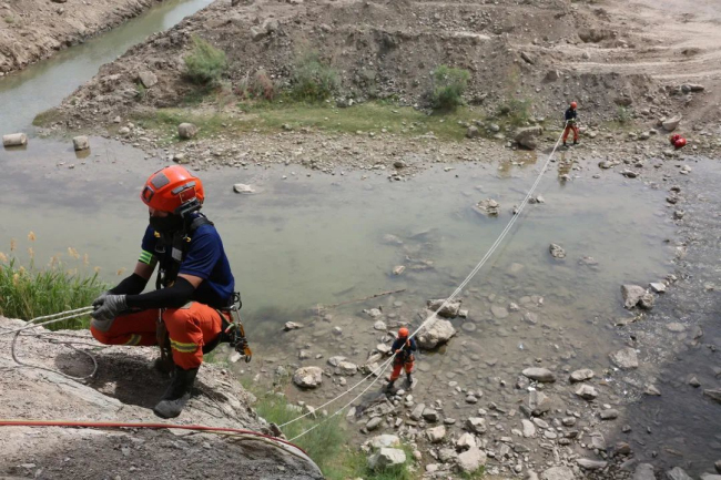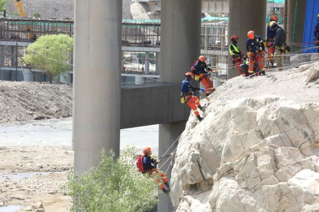 训练过程中,来自救援专家团队的教员采取示范作业、个人体会及分组训练的方法进行,参训人员聚精会神、团结协作、严格遵守训练纪律,认真领会技术要领,严格按照方法步骤进行训练。“横渡过程中一定要做好牛尾绳保护,确保自身安全。”班长时刻紧盯绳索系统操作的全过程,及时指出训练中操作不规范的问题,耐心答疑解惑,确保每名指战员真正掌握绳索救援的技术。