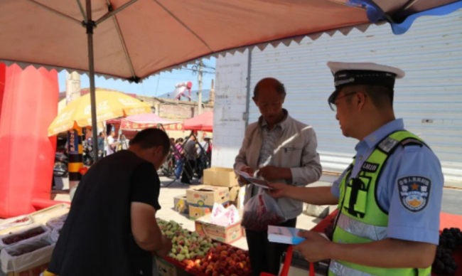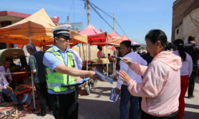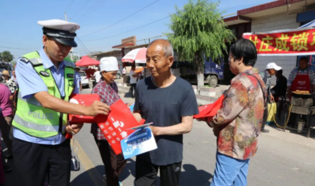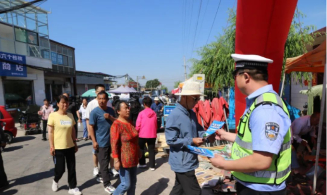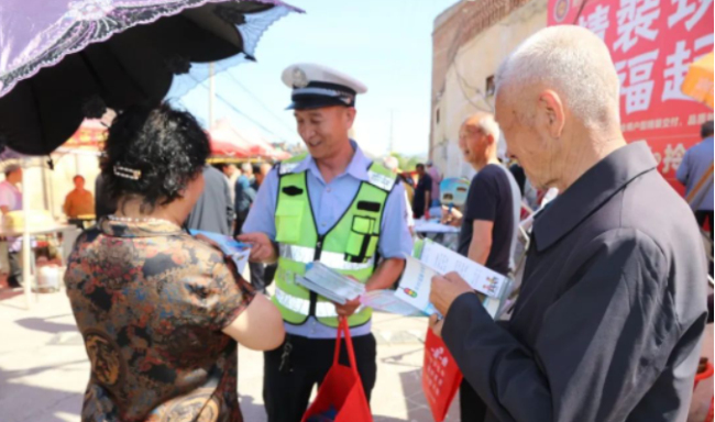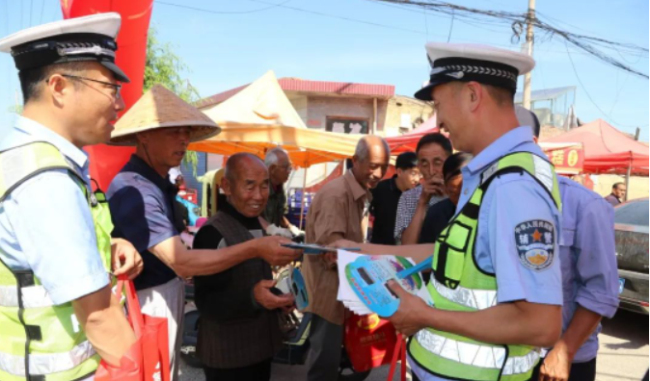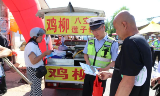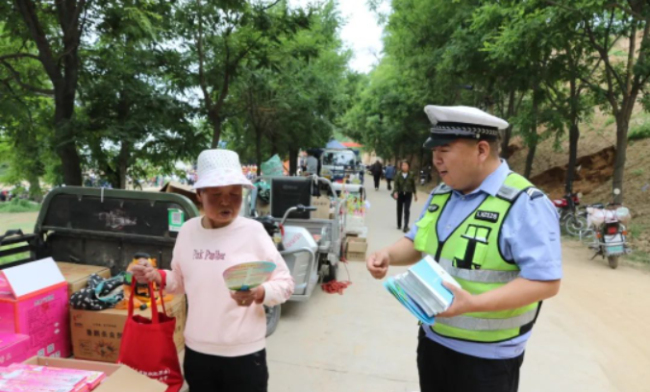 大队民警在庙会现场,以“一盔一带”、“一老一小”、“农用三轮车禁止载人”作为重点宣传内容,通过讲解辖区事故、发放浅显易懂、图文并茂及针对性强的交通安全资料。同时,现场向参加庙会的群众、摆摊商贩等要自觉遵守交通法规,规范驾驶车辆,切实做到“生命至上,酒后禁驾”,并且要劝导乡里乡亲、亲朋好友共同遵规守法,安全文明出行。告诫他们要把遵守交规落实到实际行动中,养成良好出行习惯,保持良好驾驶心态,牢固树立安全行车、安全乘车、安全骑车、安全行路的文明交通意识,庙会期间走亲访友、聚会喝酒,务必自觉遵守交通法规,切记“喝酒不开车,开车不喝酒”。