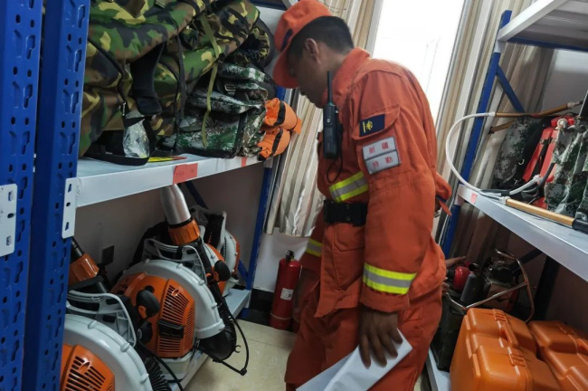 驻防分队组成现场勘察小组,携带地图、指挥终端、测量尺、测风仪、标绘笔、无人机等勘察工具,深入周边林场、防灭火风险点现场、林区巡查重点区域进行战场勘察,并按照“以点带面、多方联动、全域覆盖”模式勘察规划路线,对周边道路设施、植被分布、可用水源、可燃物载量等基础信息进行记录标注,对防火道路、生物隔离带等数据进行采集记录,及时更新战备数据,有效掌握第一手资料。