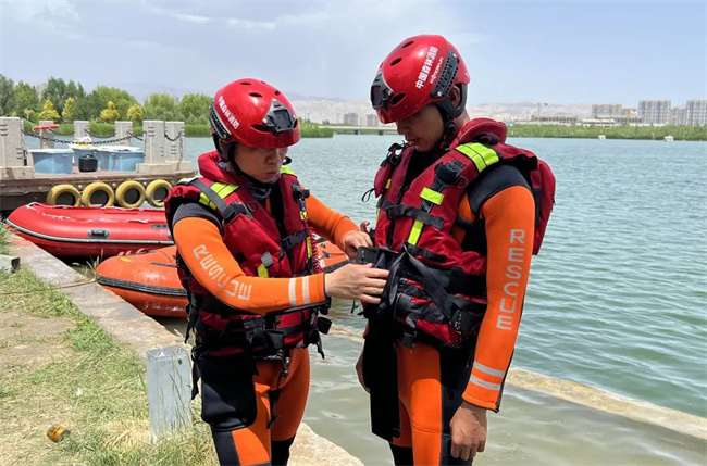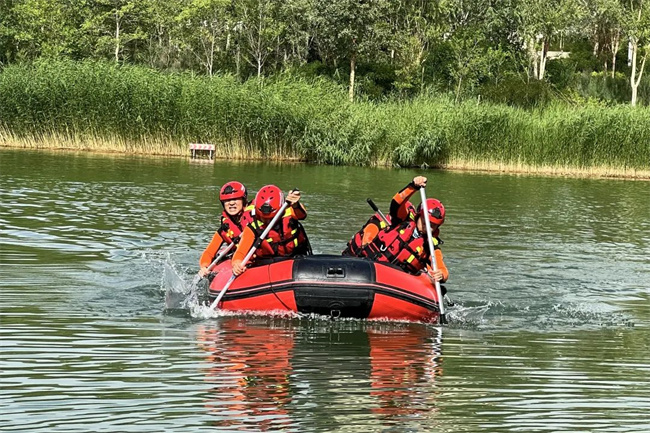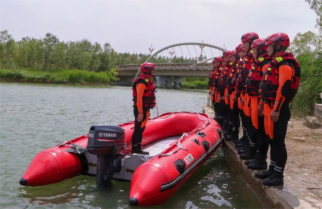 “使用舟艇之前,要对舟体进行全面检查,充气阀门是否松动、发动机是否完好,在操作过程中,不管是哪种地形条件下,当发生溺水、翻舟等险情时,被困者和溺水者生命危在旦夕,急需专业化的救援,我们的救援技能越熟练、方法越科学,溺水者生还的希望就越大。”班长任毅是大队水域救援教练员,先后多次参加上级培训,在训练中,不断为指战员传授自己的经验,不断为他们加油打气。