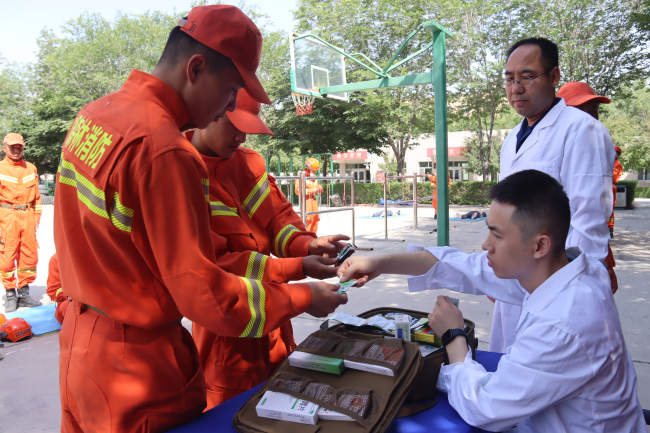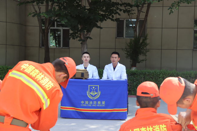 把好“教育关”提高思想认识。“热射病即重症中暑,是由于暴露在高温高湿环境中导致机体核心温度迅速升高,超过40°C,并伴有皮肤灼热、意识障碍(如谵妄、惊厥、昏迷)等多器官系统损伤的严重临床综合征。“热射病”的发生率与环境、温度、湿度密切相关。”大队高度重视卫生常识教育,及时组织开展季节性疾病的预防教育,强化指战员卫生防病意识、并传授疾病发生时的有效施救措施,提高自我防护能力。