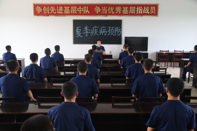 本网讯:(杨长红 李涛)夏季气候炎热潮湿,是各类传染病的多发季节,加之近期,新训工作进入复训补训阶段,各项训练工作如火如荼开展,指战员体能训练强度加大,极易发生中暑、训练伤、消化系统疾病及食物中毒等季节性疾病,为确保指战员身心健康,严防疾病滋生蔓延,近日,新疆总队新训大队多措并举全力打好夏季卫生防病工作主动仗。