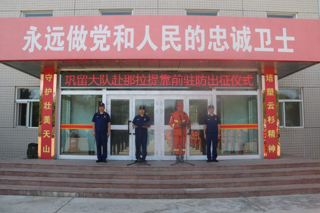 仪式上,首先尤红超大队长宣读了《伊犁森林消防支队那拉提靠前驻防实施方案》。而后,驻防分队干部田金松中队长代表全体驻防指战员作表态发言。最后郭合清主任从“提高政治站位,强化使命担当;积极防范应对,降低火灾风险;坚持动中抓建,确保队伍正规有序;加强专业训练,提高综合能力”等四个方面提出了具体要求,为高标准完成好此次靠前驻防任务明确了目标要求、提供了工作遵循。