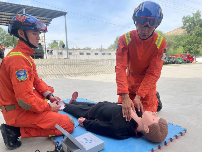 本网讯:(董彦良)为进一步提升指战员在事故现场急救能力,规范救助程序,实现灾害事故现场急救科学化,近日,新疆森林消防总队特勤大队天池驻防分队坚持“人民至上、生命至上”的理念,大力开展卫生救护训练,提升指战员卫生救护水平。