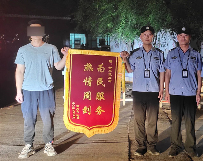 “谢谢警察帮我找回手机。”看到手机失而复得,郭先生心情十分激动地说道。6月20日,甘亭镇村民郭先生将一面印有“为民服务 热情周到”的锦旗送到甘亭派出所民警手中,表达民警帮其找到手机的感激之情。