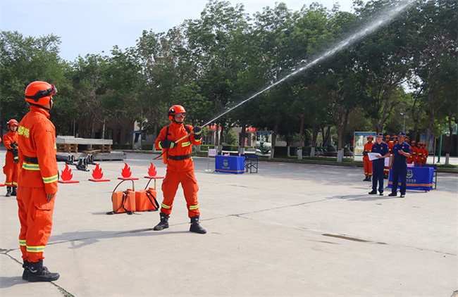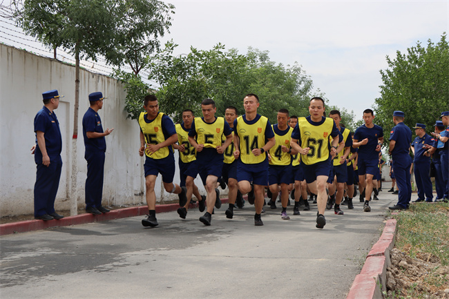 此次阶段性考核内容分为队列会操、技能考核、体能考核和理论测试四项课目,包括灭火弹投掷、水泵架设与撤收、3000米跑、单双杠一练习和理论测试等10余项内容。