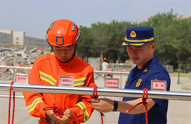 基础技能是下队后掌握综合救援专业技术的关键,本次考核,大队主要以心肺复苏、绳结制作、灭火弹投掷、水泵架设与撤收、无齿锯操作与使用、点火器操作与使用等课目为主,旨在检验近期训练成果,进一步促使新消防员掌握综合救援技术的动作要领,为下步遂行综合救援任务打下坚实基础。
