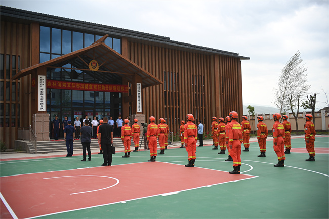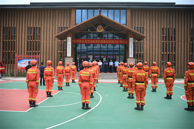 支队政治部郭合清主任代表支队党委,对靠前驻防分队提出三点要求:一是驻防队伍要服从命令,听从指挥,牢固树立“人民至上、生命至上”的救援理念,做到守土有责、守土尽责、全力以赴、不负重托。二是驻防队伍要坚持任务牵引,深入研究驻防区域地形、植被、气象、水文等情况,确保关键时刻能够上得去、打得赢,切实担负起驻地森林火灾扑救、抢险救援、特种灾害救援等综合性应急救援重任,发挥一锤定音作用,真正为人民群众生命财产安全保驾护航。三是要与驻地森林草原防灭火相关单位精诚团结,加强沟通联系,建立健全联防联控、联训联演等工作机制,扎实开展实战训练,发挥好主力军、国家队作用,安全、高效、圆满完成驻防任务。