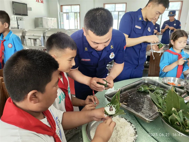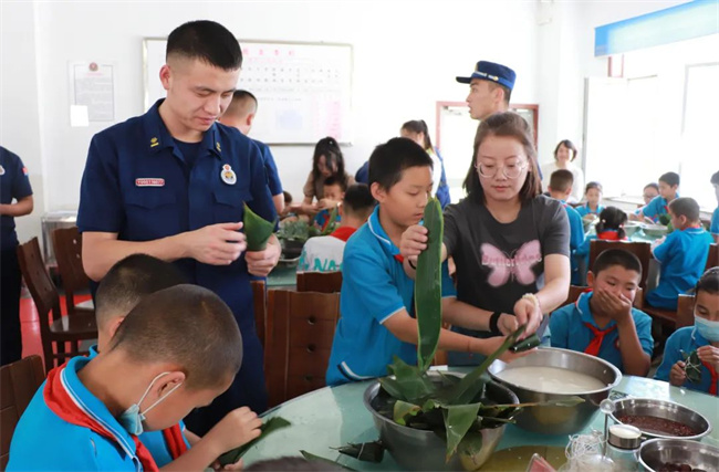小小粽子,满载着人民群众的关心和信任,该大队教导员姚方表示,活动的开展,进一步加强了队伍与驻地单位的联谊,丰富了指战员们的节日文化生活,同时更广泛的传播了消防知识,培养了孩子们从小树立“学消防、懂消防、用消防”的思维理念,无论对于大队指战员还是小学师生都受益匪浅。