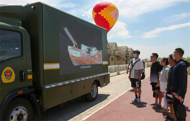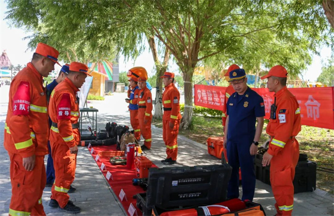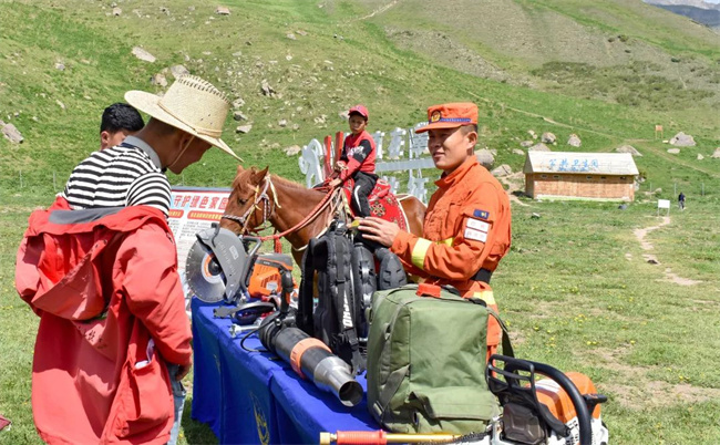 在固定宣传点,消防救援人员拉起横幅、立起展板,采取静态装备展示、模拟装备操作与使用等方式,协助围观游客亲手体验装备操作,在零距离接触中了解救援装备的工作原理,在手把手的互动体验中持续加深广大游客对森林消防事业的理解认同,全方位、多角度营造宣传声势。