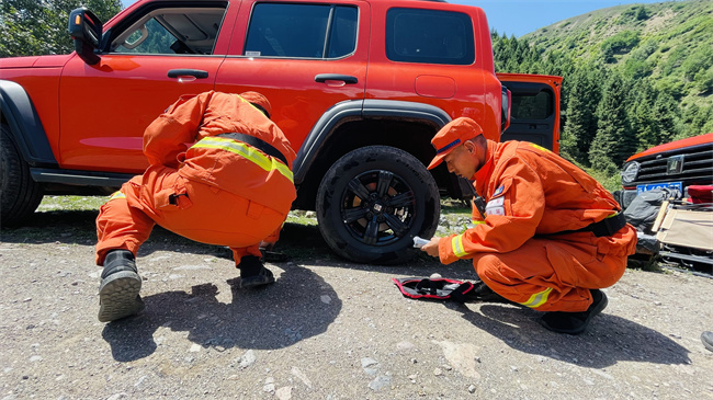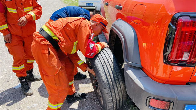 6月23日,伊犁州森林消防支队那拉提驻防分队在新源县坎苏沟林区开展防火执勤时,发现几名游客站在路边焦急的四处张望。田金松中队长见状,上前询问情况,游客表示:“自己车的轮胎坏了无法正常行驶,不知该怎么办。”