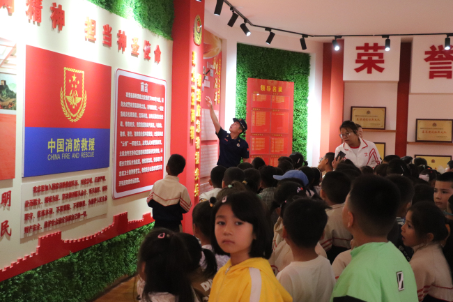 大队通过设置装备展示、宿舍体验、荣誉室参观等方面,让来队参观小朋友和老师了解森林消防队伍的工作、生活、训练。活动中,指战员们向小朋友们展示森林灭火主战装备以及各类的救援、通信等装备细心介绍各种装备性能,有的小朋友还好奇地摸着装备器材不断提出各种问题,天真的话给大家带来了阵阵笑声耐心回答各种问题。在指战员的带领下,孩子们有序进入班级之中,映入眼帘的是整齐划一的“豆腐块”和干净整洁的环境,而指战员也有条不紊拿出自己的看家本领,很快一床方方正正的被子就呈现在小朋友面前,房间中瞬间响起了热烈的掌声。通过整齐划一的内务设置,真实感受到指战员严明的纪律和过硬的作风,同时也充分满足了小朋友们的好奇心。