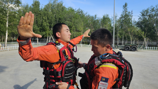 新疆森林消防总队阿勒泰地区森林消防支队富蕴县森林消防大队大桥林场驻防分队坚持边查边改,对自查自纠发现的问题,分析原因并及时整改,装备的性能和完好率直接关系着能否有效完成好任务,分队针对当前防汛形势,严格落实装备保养制度,认真做好相关救援装备检修、维护和测试工作,定期对安全绳、救生圈、橡皮艇、挂机、抛投器、救生衣等进行细致检查和维护保养,对损坏的器材准备及时进行维修、更换,保证救援装备时刻保持良好状态。同时从水域救援装备器材的结构、用途、性能参数、以及如何正确操作使用等方面为队员讲解、示范,最大程度发挥水域救援专业队装备器材的实战效能,并要求指战员严格落实水域救援个人防护装具“十个一”、水域救援“五个决不允许”等相关规定。