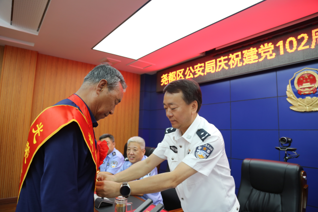 本网讯:(田哲斌)为庆祝中国共产党成立102周年,激励广大党员民辅警坚定理想信念、忠诚履行使命,6月29日上午,尧都区公安局举行庆祝建党102周年“七一”表彰大会。尧都区副区长、区公安局党委书记、局长崔军出席会议并讲话,局党委委员、副局长褚韶勇主持会议,局领导班子成员、“光荣在党50年”老党员代表、各单位主要负责同志和受表彰的先进基层党组织、优秀党务工作者和优秀共产党员代表参加会议,会议以视频形式开至基层各单位。