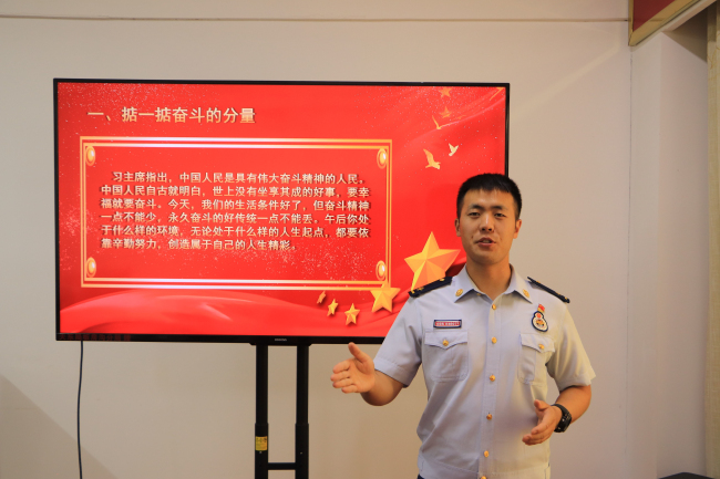 最后,教导员郭超就如何抓好思想政治教育工作提出三点具体要求:一要融入中心任务搞教育,做到教育随着车轮转、跟着任务走,真正把教育融入中心任务。二要创新方式搞教育,广泛开展群众性自我教育活动,形成人人参与教育、自愿接受教育良好局面。三要以身作则搞教育,以自身行为示范引导指战员,真正立起政治教员以身作则的良好形象。