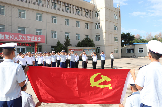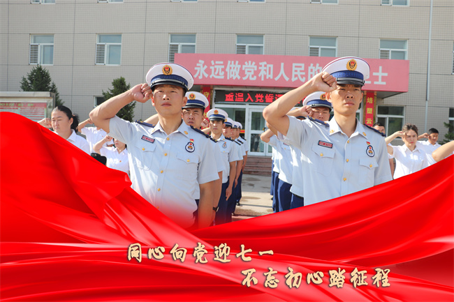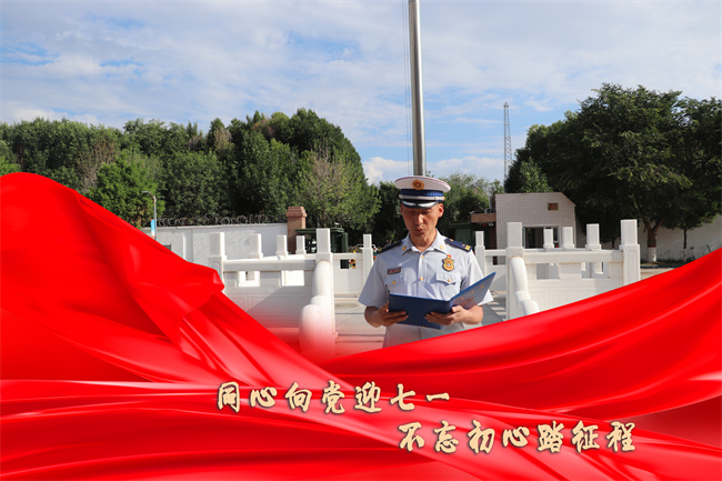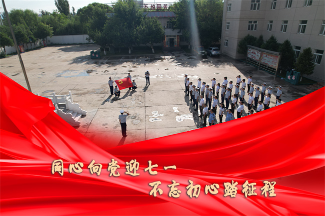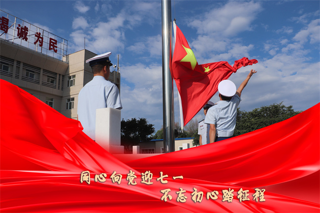 “升国旗!奏国歌!”伴随着庄严的《义勇军进行曲》响起,鲜艳的五星红旗冉冉升起,全体人员肃然而立,以庄严的举手礼、注目礼致敬国旗,为党102周岁生日送上美好祝福。