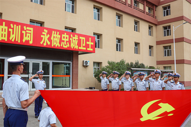 “我志愿加入中国共产党,拥护党的纲领,遵守党的章程,履行党员义务……”升旗仪式结束后,全体党员举起右拳,面向党旗庄严宣誓,这既是共产党人对初心使命的坚守,也是对理想信念的淬炼,激励着全体党员在未来的工作中时刻不忘共产党员的光荣与责任,用实际行动践行誓言,不断坚定为消防救援事业奋斗终身的信心和决心。