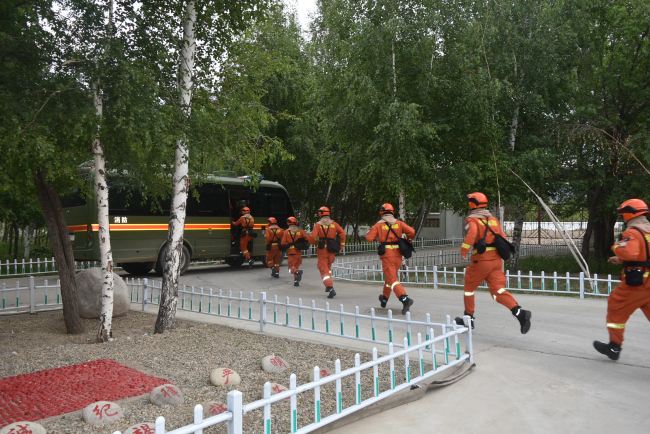 “嘟、嘟、嘟……紧急集合!”“同志们!接上级命令,大桥林场居民因野外用火引发生森林火灾,上级命令我驻防分队出动25人与当地半专业扑火队员组成前置灭火力量处置扑救,各带车干部、驾驶员就位,人员登车。”接到火情通报后,驻防分队快速反应,组织人员向火场机动。