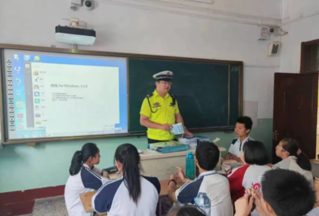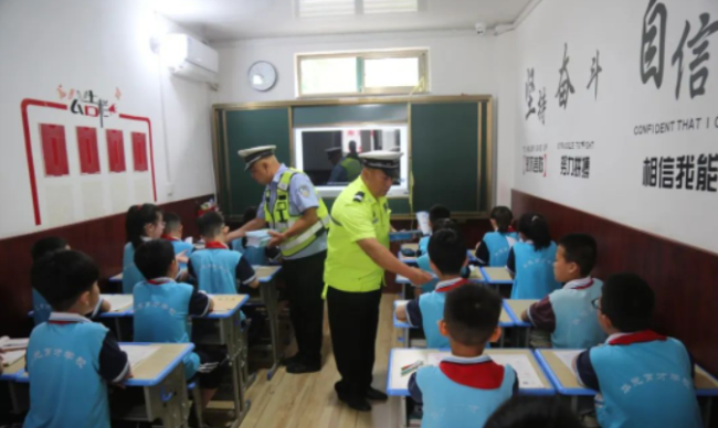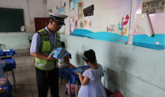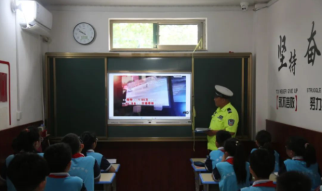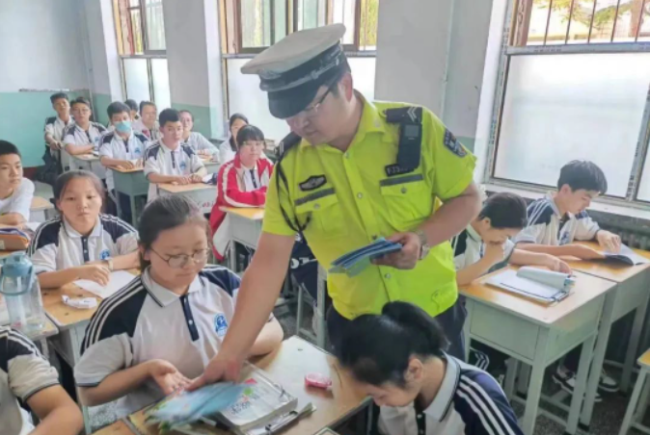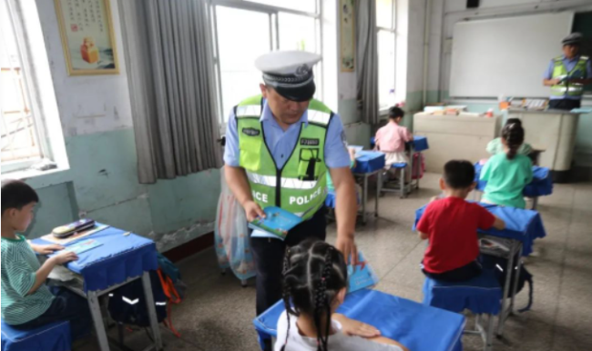 期间,民警结合学生出行规律和特点,通过面对面讲解、播放警示教育片、发放宣传资料等形式向学生们讲解了生活中常见的交通标志标牌标线、交通信号灯等方面的知识,并结合夏季出行注意事项,引导学生们乘坐私家车正确使用安全带,乘坐摩托车、电动车正确佩戴安全头盔,不在马路上玩耍嬉戏,警惕大货车转弯盲区等常识;并提醒学生们要从小养成良好的交通习惯,知危险、会避险,安全文明出行,将所学的交通安全知识传播给身边的人,带动身边的人一起严格遵守交通安全法规。期间,民警还结合“一盔一带”交通安全知识与学生们进行互动问答,大家热情高涨,积极踊跃,氛围十分热烈。同时根据中小学生暑假外出游玩活动增多和年龄特点,叮嘱学生们摒弃随意横穿马路、追逐打闹等交通陋习,引导学生养成文明参与交通、时刻谨记安全出行的良好习惯。教育学生将学到的交通安全知识带回家,充分发挥“小手拉大手”作用,督促父母遵守交通法规,告别斑马线前不礼让行人、开车抛物等不文明出行行为。