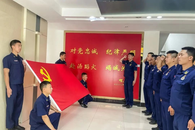 驻防分队组织全体党员开展集中宣誓,激励党员铭记入党誓言,坚定不移听党话、跟党走,做信念坚定、对党忠诚的共产党员,引导党员回忆入党初心,进一步严守党员标准,履行党员义务。