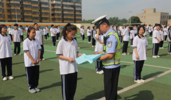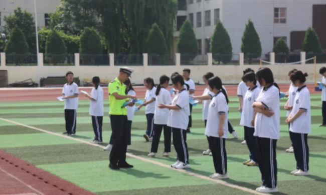 活动中,民警针对学生年龄特点,结合日常交通出行和常见交通安全隐患及辖区交通安全实际,向孩子们讲解交通安全知识及日常出行注意事项。同时,还向学生们讲述了闯红灯、逆行等不良交通行为的危害,教育学生假期外出活动要遵守交通规则,不乘坐无牌、超员车辆,乘坐摩托车、电动车佩戴安全头盔等,民警还号召广大学生要向亲人朋友传递交通安全知识的正能量,远离交通陋习,远离交通事故。