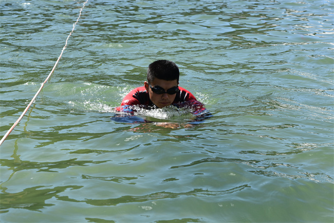 训练过程中,教练员普及基础水域救援知识,详细讲解示范水域救援的动作要领,通过200米游泳比赛充分调动队员们的训练热情,营造浓厚的训练氛围,从而确保高效的训练质量。